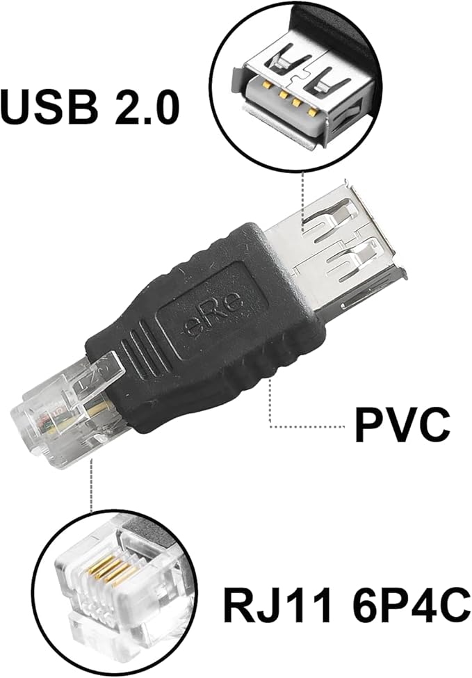 • Package included: 2 pcs RJ11 6P4C telephone jack to USB A Male Plug