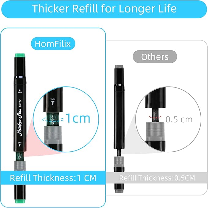 - [ Wide Core ]: Each alcohol marker has a wide core of about 1 cm, providing extended durability compared to other markers. This feature enhances the lifespan of each pen