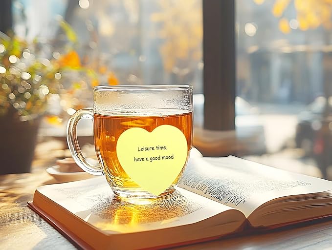 Mini Skater 2 Pack Kraft Paper Sticky Notes Heart Shaped Self-Stick Blank Book Tabs Paper Markers Sticky Notes Pad 100 Sheets Index Sticker (Light Yellow)