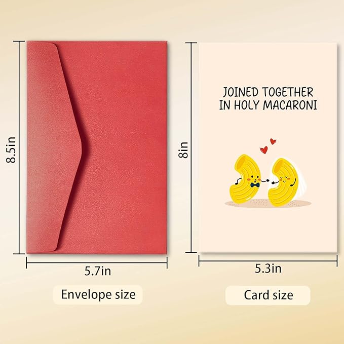 Cute Macaroni Pun Engagement Card, Funny Wedding Card for Bride and Groom, Wedding Gift Card for Newlyweds, Bridal Shower Card for Him Her, Joined Together in Holy Macaroni