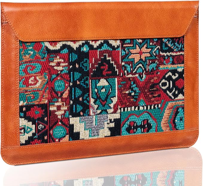 - [Material]-The Laptop Case Made of Jacquard cloth and leather, soft plush lining - anti-static, can effectively absorb shock, reduce damage caused by accidental collisions, and protect the notebook from scratches.