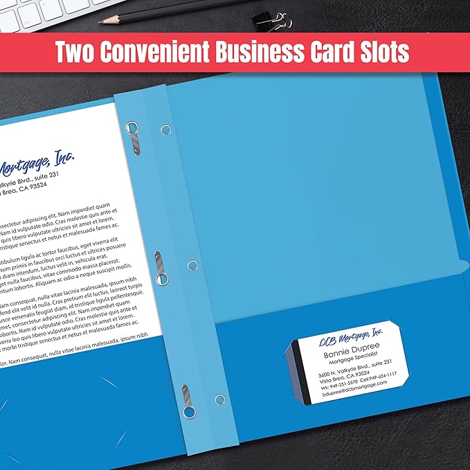 - 2 FLAT POCKETS: Each folder features two spacious 3.75" pockets to hold loose papers and includes two business card slots for easy access to contact information or personalized inserts.