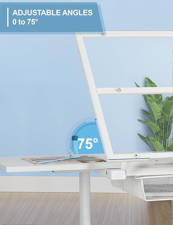 - Extended Workspace & Functionality: The desk also features an E0-grade MDF extension that pulls out to hold books or a laptop. With metal drawers and storage strips, you’ll have plenty of room for your tools and supplies. This multi-functional drafting desk is perfect for artists, designers, or anyone who loves to create!