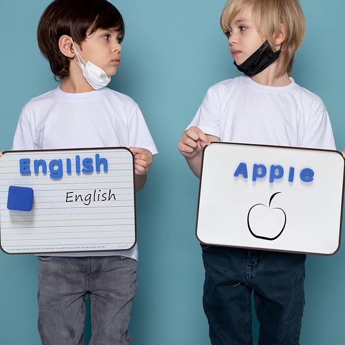- âăPack of Whiteboardsă: Includes 6 sturdy whiteboards, 6 erasers 2 x 2 inches, and 6 black dry erase markers, 52 Pcs magnetic alphabet letters.