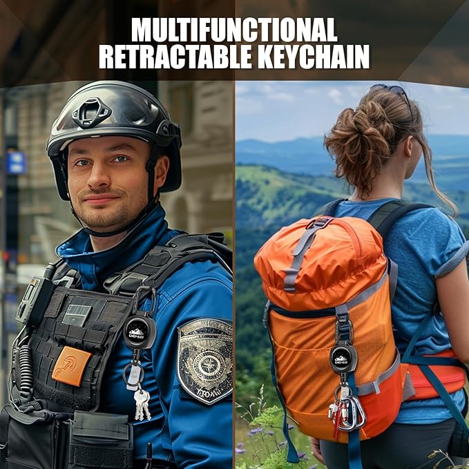 - CONVENIENT TO CARRY: This retractable keychain comes with a zinc alloy mountaineering clasp that makes it easy to attach to your belt, backpack or outdoor gear. In addition to holding badges, keys and ID cards, it can also hold pliers, wallets, bottle openers and other essential gadgets for various activities