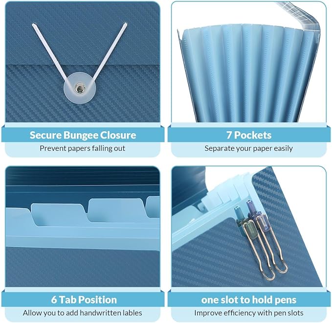 SKYDUE Accordion File Organizer, Expanding File Folder with 7 Pockets, Portable Receipt Paper Documents Organizer, Letter Size Filing Folder School Office Supplies Dark Blue Darkblue