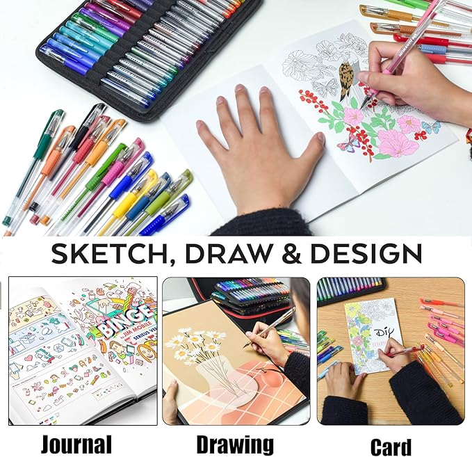 - LONG LASTING:Our gel pens and brush pens come with 40% more ink,can coloring more pages than before.Do not need find refills when doing artworks.Our colorful pens are easy to hold and comfortable for note taking, drawing, crafting,doodling and journaling