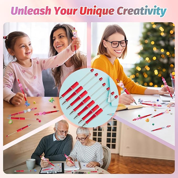 - Beadable Pens Bulk: The beaded pen bulk contains red pen shell colors and matching black ink refills, sufficient quantity and a variety of bright colors can meet your daily replacement needs, convenient to carry, diy pens show personality