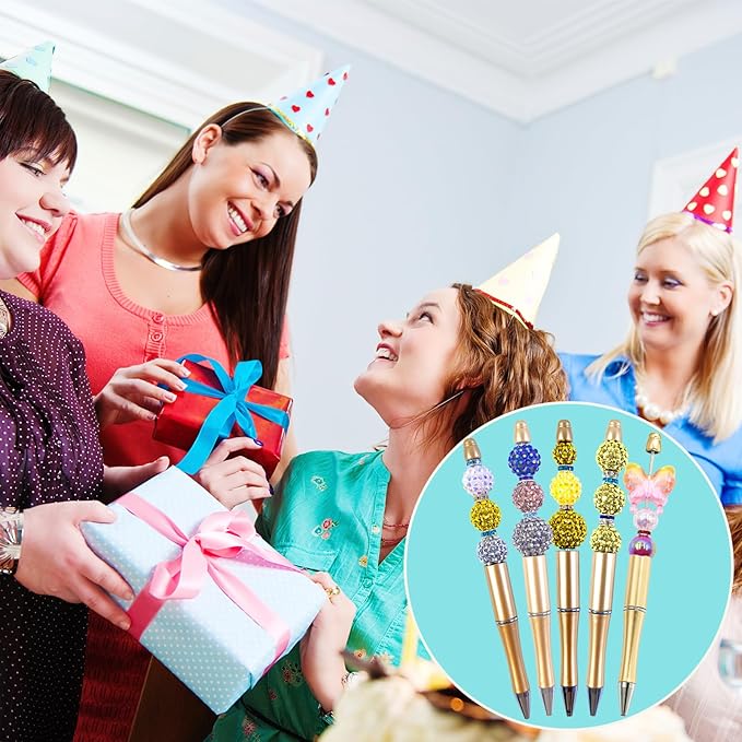 - Beadable Pens Bulk: The beaded pen bulk contains golden pen shell colors and matching black ink refills, sufficient quantity and a variety of bright colors can meet your daily replacement needs, convenient to carry, diy pens show personality