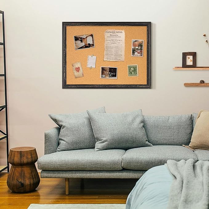 DOLLAR BOSS Cork Board for Office 24 X 18 Inches Cork Boards for Walls Bulletin Board, Decorative Hanging Pin Board Rustic Wooden Frame Vision Board Cork Notice Board for Office Home Decor, Black