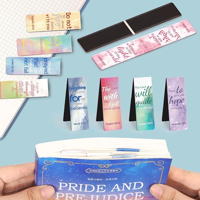 - 【Christian Design】These magnetic bookmarks for women feature bright and dreamy colors and popular inspirational bible quotes, with beautiful and vivid appearance, making it easier for you to find the pages you have read and making you feel happy. As a magnetic bookmarks christian, provide people with strength and encouragement, making it very suitable for those who need blessings or inspiration.