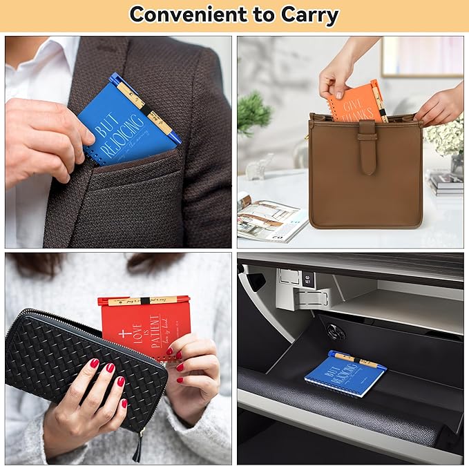 - Divinely Endowed Bundles: Receive 7 sets, each set consisting of a single-color christian notebook and a matching Christian pen. The notebook bears inspiring Bible verses on its facade. They come in 7 distinct hues, not merely symbolizing the diversity and oneness in faith but also making each set peculiar. Altogether, you'll receive 7 small notepad and 7 pens, 14 items to accompany your spiritual voyage. These sets are perfect for personal reflection, group meditation, or sharing with friends and family