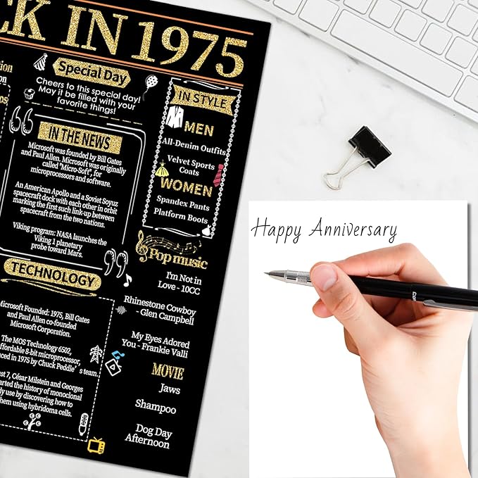 - 【Back in 1975】This anniversary card records interesting stories from 1975 and reminds us of the past. Create more interesting topics for this special day.