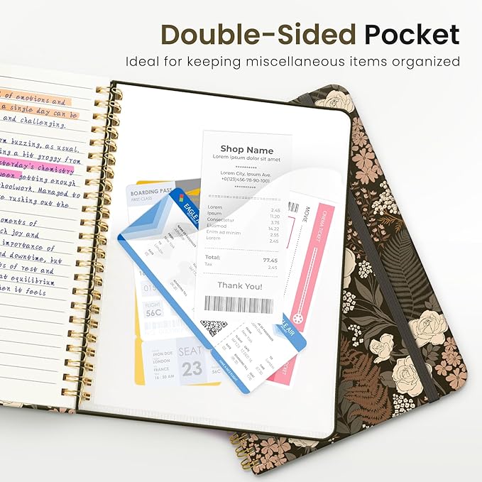 - Streamlined and Practical Design: Featuring 140 lined pages and a 6-page blank table of contents, our notebook provides generous room for note-taking and effortless referencing. An inner pocket safeguards miscellaneous items, while an elastic closure band ensures the notebook remains securely closed when not in use.