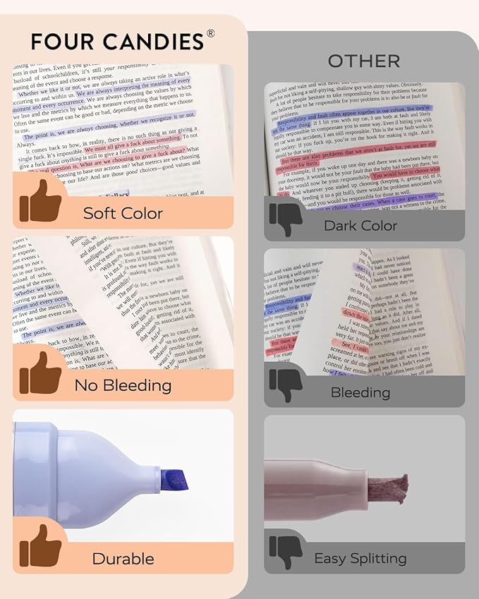 Four Candies 8 Pcs Highlighters Assorted Colors, Cute Pastel Highlighter Set, Dry Quickly, Soft Chisel Tip, Assorted Colors Bible Highlighter for No Bleed, Aesthetic Highlighters for School, Office