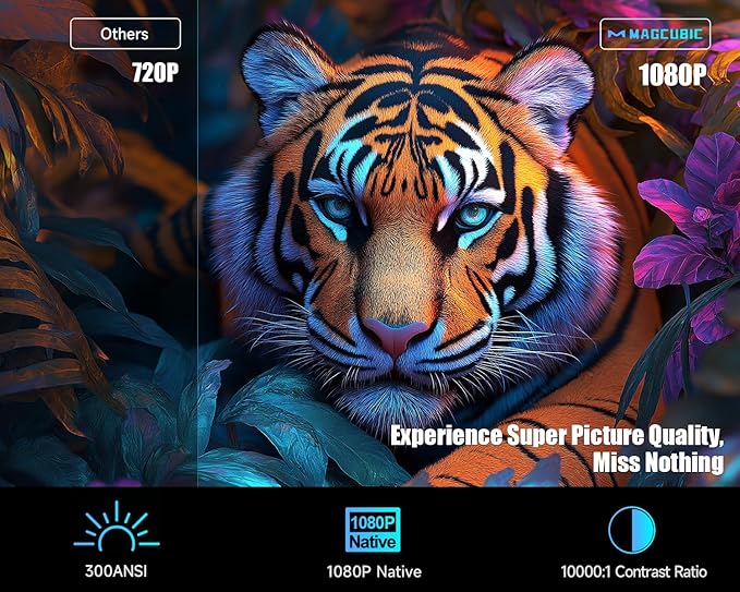 - 1080P Native & Cutting-edge Chipset-Amlogic S950D4: Magcubic movie projector provides a crystal-clear image quality with 1080P Full HD optcal/native resolution, good brightness 320ANSI 12000Lumens, contrast ratio 10000:1, ensuring vibrant colors and sharp details for an immersive viewing experience. And it uses the top Amlogic S950D4 chip, it has established a leading edge in the display field, ideal for handling HD video playback with minimal latency or stuttering