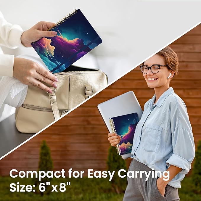 - Medium-Sized Portability: Measuring 6 inches x 8 inches, our medium notebook strikes the perfect balance between portability and functionality. Its sturdy construction and aesthetic design make it an ideal companion for all your writing endeavors.