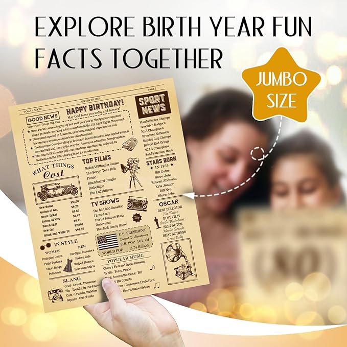 - ✨Best 70th Birthday Card - If you are looking for a gift for friends and families who are going to celebrate a 70th birthday, This jumbo 70th card is filled with interesting facts from 1955. It has an antiqued paper background