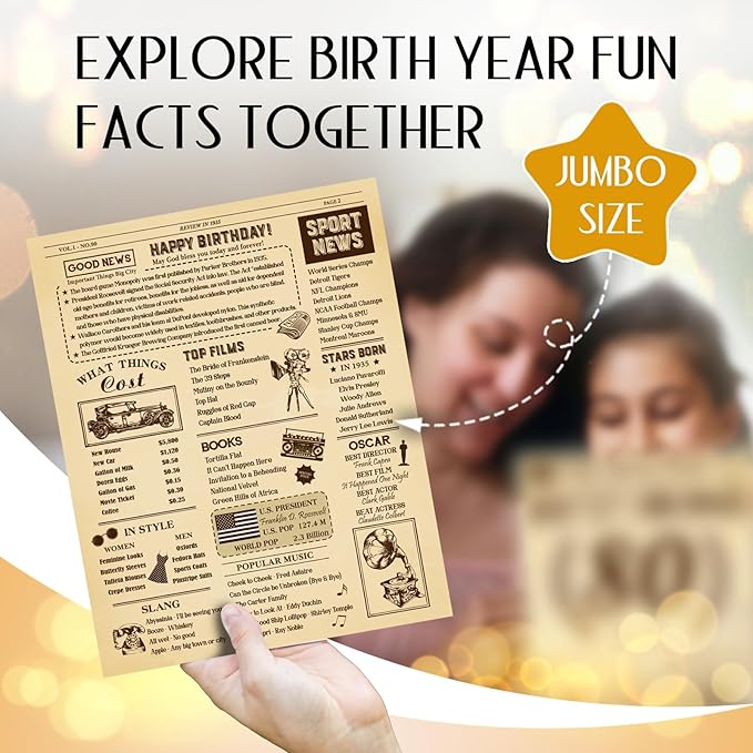 - ✨Best 90th Birthday Card - If you are looking for a gift for friends and families who are going to celebrate a 90th birthday, This jumbo 90th card is filled with interesting facts from 1935. It has an antiqued paper background