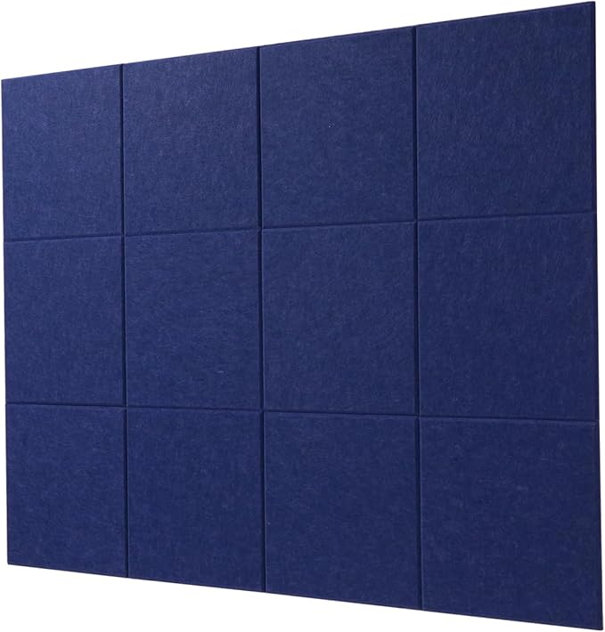 LAJAR Large Felt Wall Tiles, 12 Pack Cork Board Alternative with Removable Adhesive Tabs, Bulletin Pin Boards for Office, School and Home (Dark Blue)