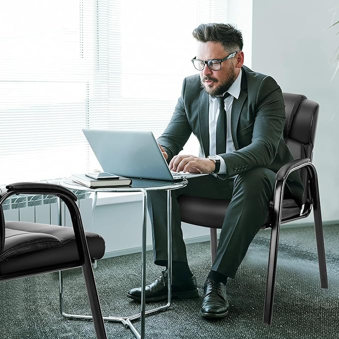 - 【Fashionable and beautiful】The office guest chair is made of black leather and black metal frame, beautiful appearance, can be integrated with various decorations. The reception chair is the first choice for conference room, office, Waiting room, study room, library and so on.