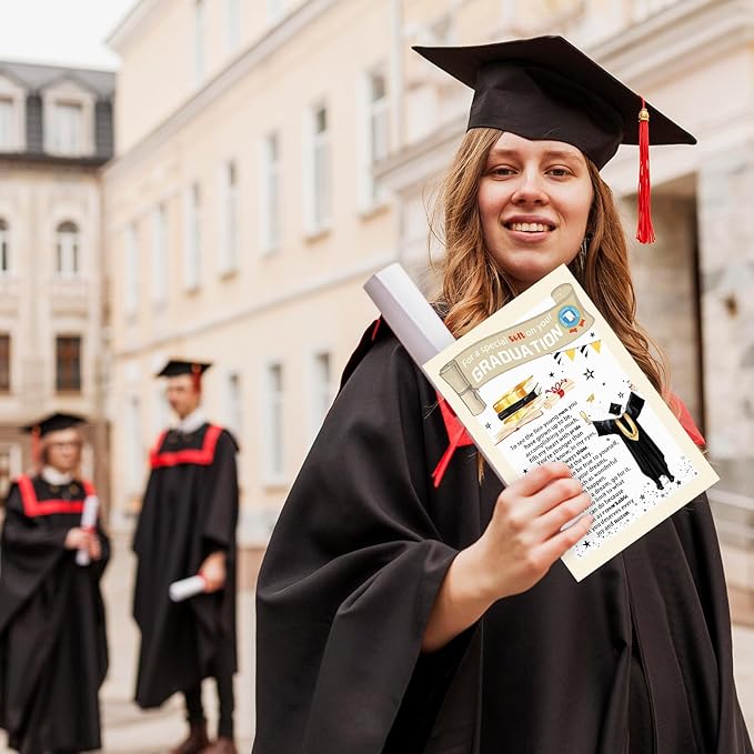 • Funny graduation card folds to 8 x 5.3 inches with a red envelope and closure sticker, and is wrapped in clear cellophane
