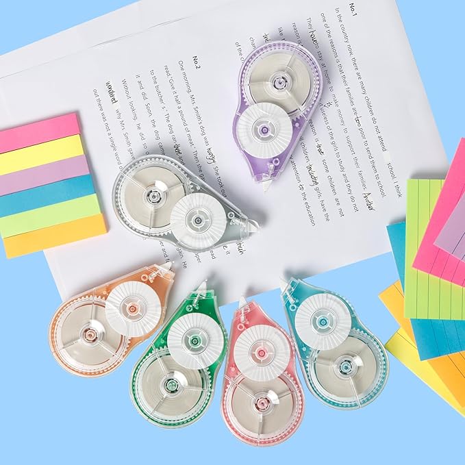 - Upgraded Large Capacity Design: Enjoy 2-3 times the length of standard correction tapes with our correction tape, featuring 30m (98.4 ft) per roll and a total of 180m (590.5 ft) across 6 vibrant colors — ensuring you have plenty for all your correction needs.