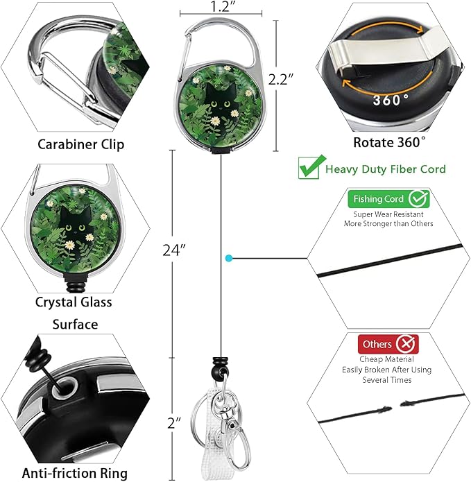 - Versatile Usage: The retractable badge reel is made of premium plastic and steel, sturdy and light-weight. It is easy to clip on to a belt, backpack, pocket or anywhere you like, with 360 rotating carabiner clip. You can attach your keys, student cards, or ID cards to the key holder easily and conveniently. Great for nurses, doctors, maintenance, office staff, business people, teachers, students, factory workers, drivers, etc