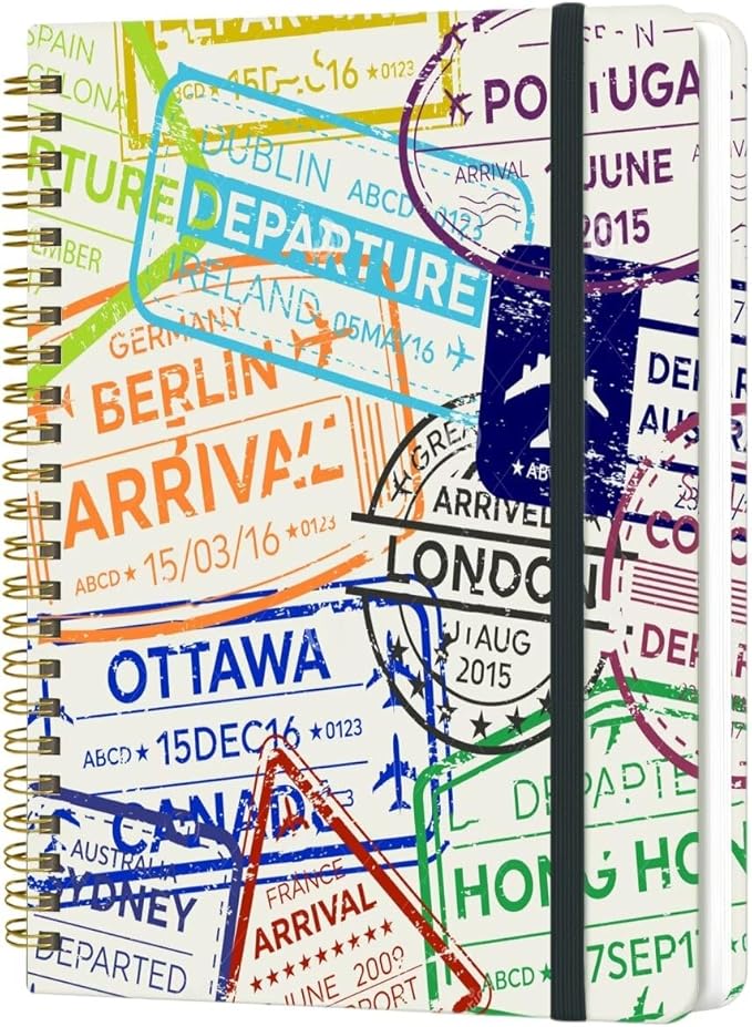 Spiral Notebook - A5 Spiral Notebooks, 8.3'' × 5.8'', 160 Pages, Aesthetic Journaling Notebooks for Women, College Lined Notebook with Elastic Closure, Back Pocket, for School Office, stampA