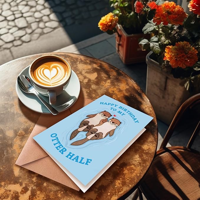 Funny Birthday Card, Happy Birthday To My Otter Half, Birthday Card for Boyfriend Husband Fiancé, Perfect for Partner, Greeting Card for Partner, Cute Animal Happy Birthday Card