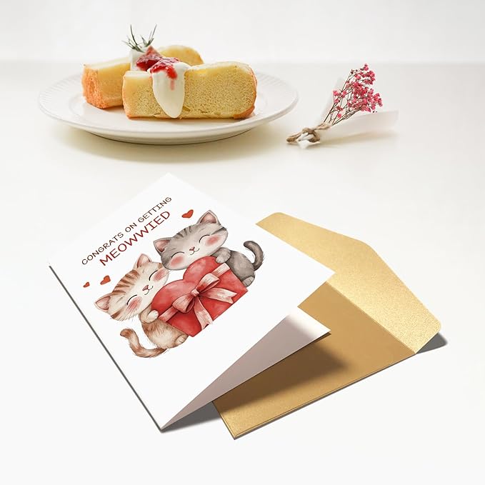 • Whether you're attending a humorous cat-themed wedding or just looking to add a quirky touch to a traditional celebration, the cat wedding shower card is sure to stand out.