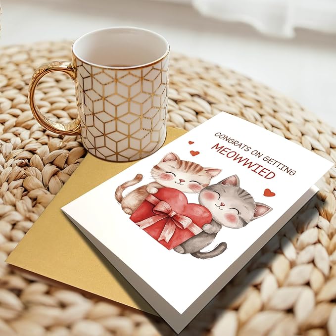 • If you're looking for a hilarious wedding card that speaks to the couple's love of cats, this is the perfect choice, sure to bring a smile to their faces!