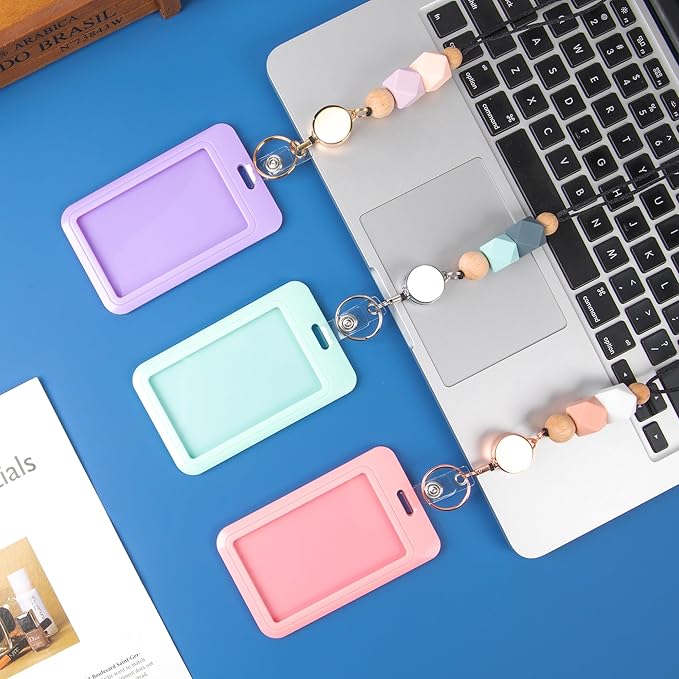 - 9-in-3 Sets Badge Lanyards: This set includes 3 retractable lanyards for ID badges (19.7 in / 55 cm), 3 PVC ID holders (4.4 x 2.7 in / 11.2 x 6.8 cm), and 3 colorful ABS badge holders (4.3 x 2.8 in / 11 x 7 cm), offering a convenient solution for carrying your ID badge or keys