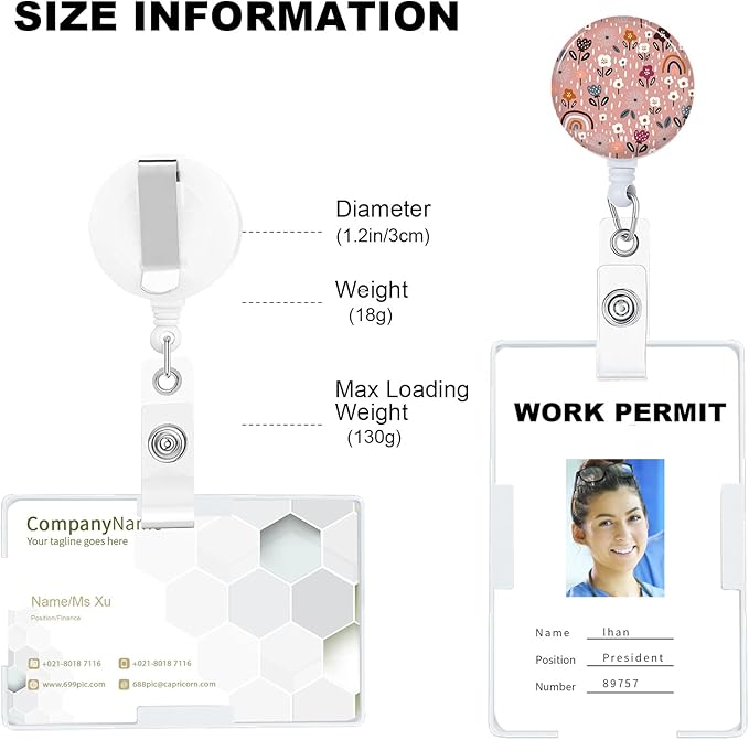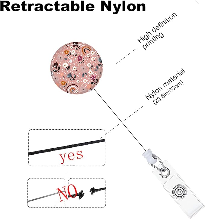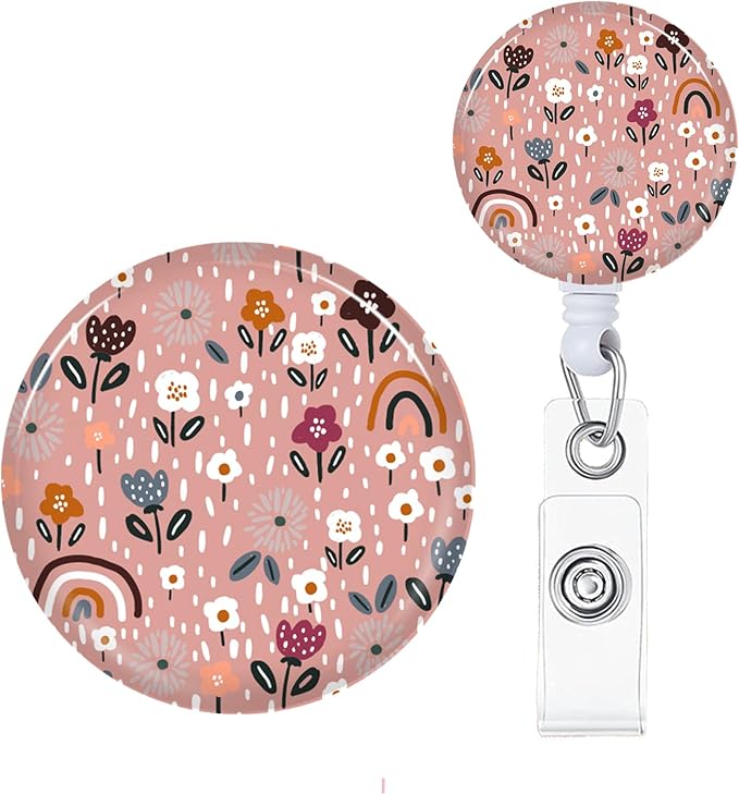 Retro Rainbow Badge Reels Holder Retractable with ID Clip for Nurse Name Tag Card Nursing for Doctor Teacher Student Employee Office Medical Work