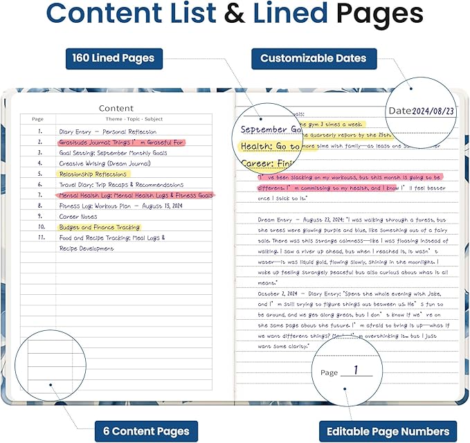 - Lay-Flat Design for Effortless Writing: The 180° lay-flat design makes writing a breeze for both left- and right-handed users. Whether you're jotting down quick notes or composing longer entries, this notebook provides total ease and comfort on any surface.