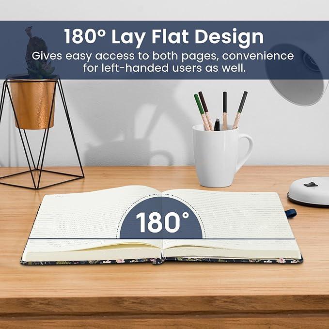 - Lay-Flat Design for Effortless Writing: The 180° lay-flat design makes writing a breeze for both left- and right-handed users. Whether you're jotting down quick notes or composing longer entries, this notebook provides total ease and comfort on any surface.