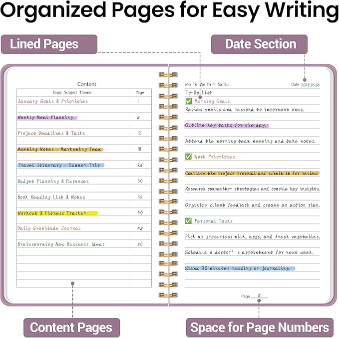 - PERFECT FOR EVERY USE: This lined journal is incredibly versatile—ideal for jotting down notes, keeping a daily journal, organizing ideas, or setting goals. Whether you're at school, work, or just reflecting on your day, it's the perfect companion for any occasion.