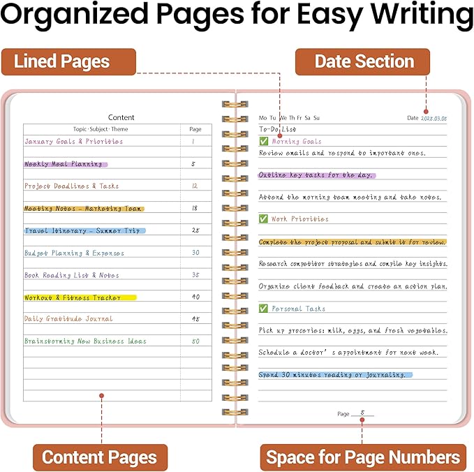 - PERFECT FOR EVERY USE: This lined journal is incredibly versatile—ideal for jotting down notes, keeping a daily journal, organizing ideas, or setting goals. Whether you're at school, work, or just reflecting on your day, it's the perfect companion for any occasion.