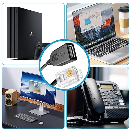 - PLUG AND PLAY:USB female to RJ116P4C male cable, plug and play, easy to carry, no need for additional drivers or software for quick and easy installation
