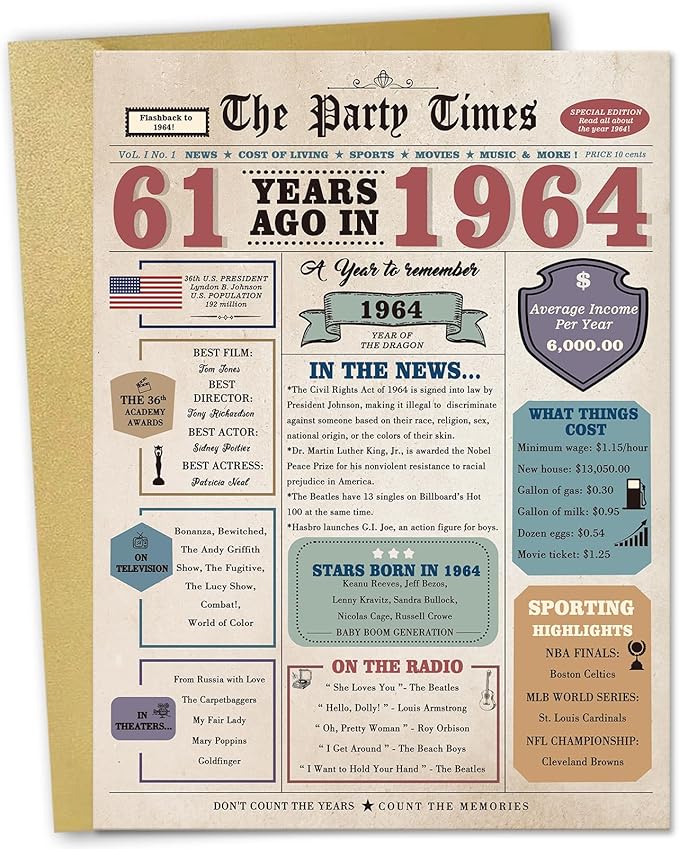 • 【Product Size】A 10.6 x 7.9 inches 61 year old birthday card stands out for its oversized size. It comes with an envelope for easy mailing or gifting