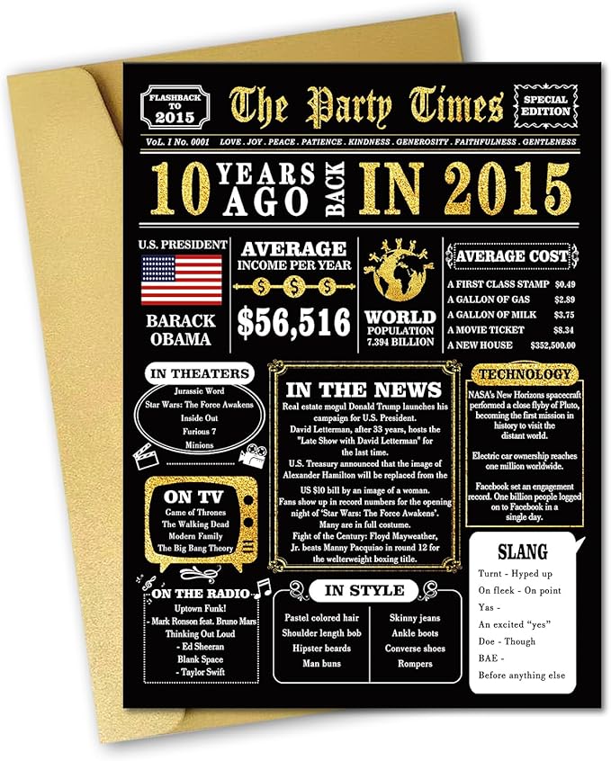 - PERFECT GIFT IDEA -Find interesting 10th birthday cards for your kids. The cards contain some specific events in 10 years ago, which can help you review interesting events with family and friends.