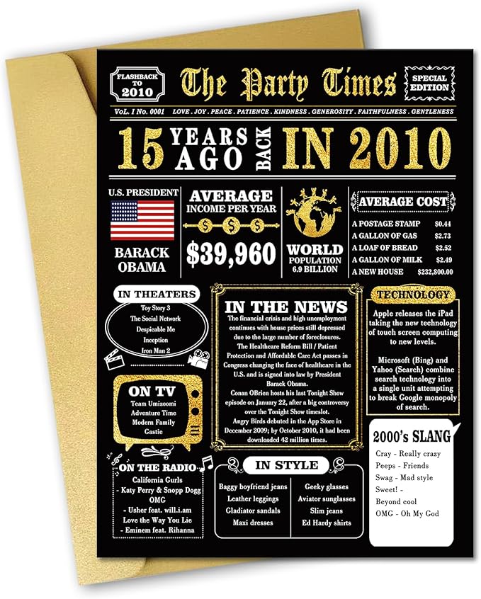 - PERFECT GIFT IDEA -Find interesting 15th birthday cards for your kids. The cards contain some specific events in 15 years ago, which can help you review interesting events with family and friends.