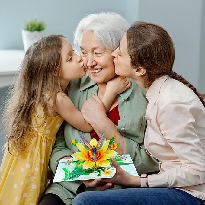 - 【Quality Material】 The dragonfly pop up card is made of high quality cardstock that's thick and durable, clearly printing, Daffodils flower gifts pop up card blend creativity, exquisite craftsmanship, and beautiful emotions. These captivating pieces of art are sure to leave a lasting impression