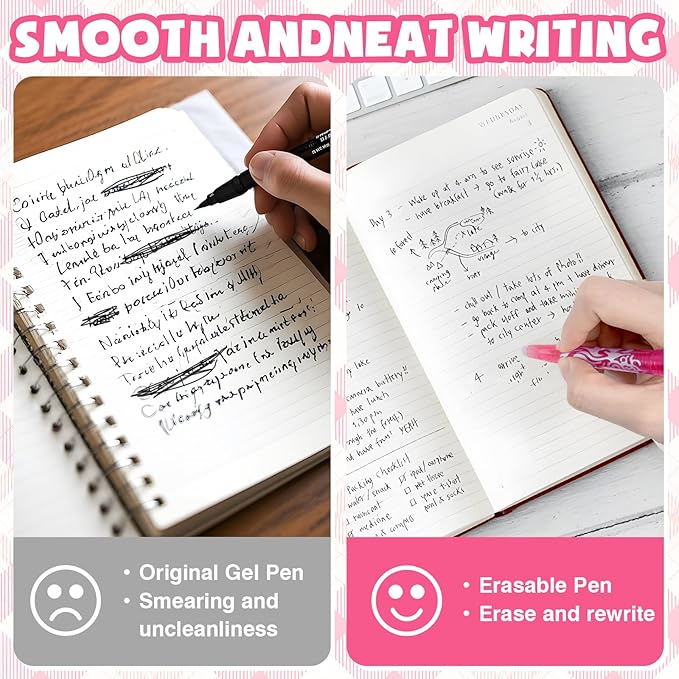 - Easy to repair: This erasable pen has a unique erasing function that effectively protects paper from tearing or puncturing. When using this pen for writing, you don't need to worry if there are errors, as it can easily remove writing errors without causing any damage to the paper. This allows your document to remain neat and flawless, ensuring a professional appearance