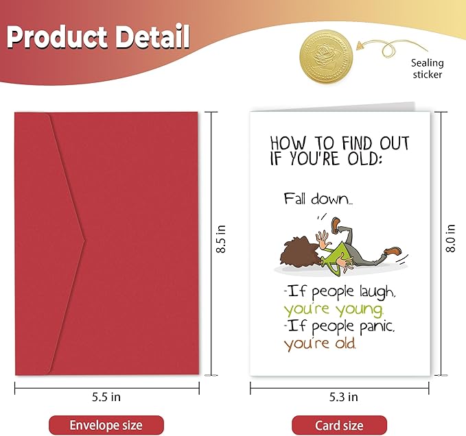 Funny Birthday Card for Him Her, Hilarious Birthday Cards for Men Women, Snarky Humour Birthday Card for Friends, How to Find Out If You're Old, Fall Down...