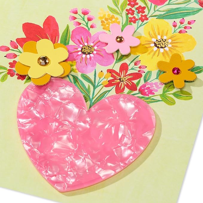 • This Papyrus birthday card is luxuriously handcrafted and features a pink acrylic heart vase, embellished with foil and faux leather flowers.