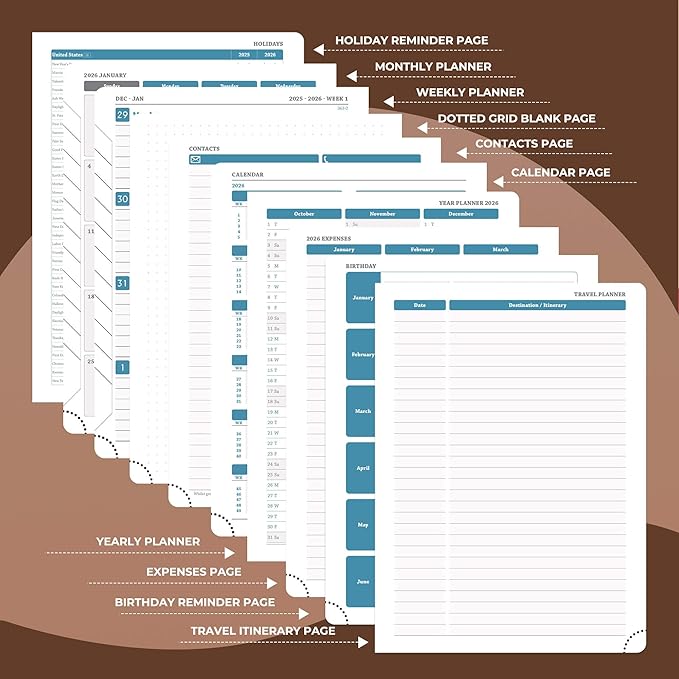 - Professional Grade Material for Your Daily Planner: Crafted with FSC 100GSM thick paper, this 2026 planner ensures good writing with markers while gentle on your eyes through its ivory white pages. The leather soft cover and lay flat binding make it a calendar planner companion for busy professionals, students, and families