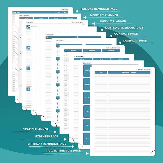 - Professional Grade Material for Your Daily Planner: Crafted with FSC 100GSM thick paper, this 2026 planner ensures good writing with markers while gentle on your eyes through its ivory white pages. The leather soft cover and lay flat binding make it a calendar planner companion for busy professionals, students, and families
