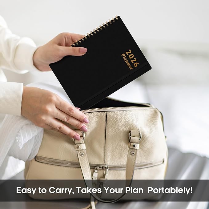 - Functionality Perfected, Style Exemplified: Revel in the embrace of 6.3" x 8.5" 2026 planner weekly and monthly, thick paper that exudes quality, and a hardcover cover adapting seamlessly to your lifestyle. Let monthly tabs and strong twin-wire binding elevate your planning journey, while the elastic band adds convenience for easy use. Contacts, a 2026 Yearly Overview, Reference Calendars, and 2026 Holidays enrich your journey.