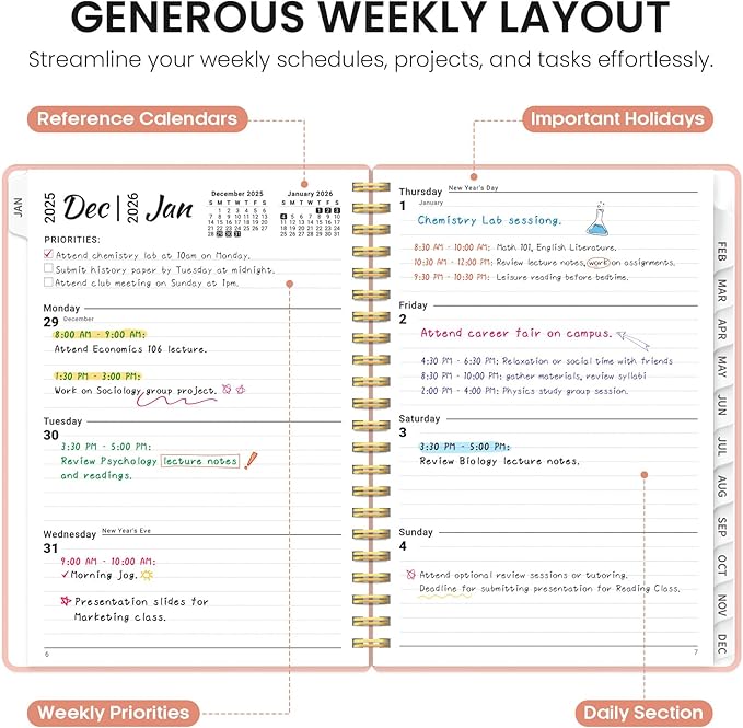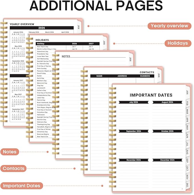 - Sleek and Functional Design: The Taja 2026 weekly and monthly planner features thick, high-quality paper and a durable hardcover that adapts to your lifestyle. With monthly tabs, twin-wire binding, and an elastic band for added convenience, this planner perfectly blends practicality with sleek design.